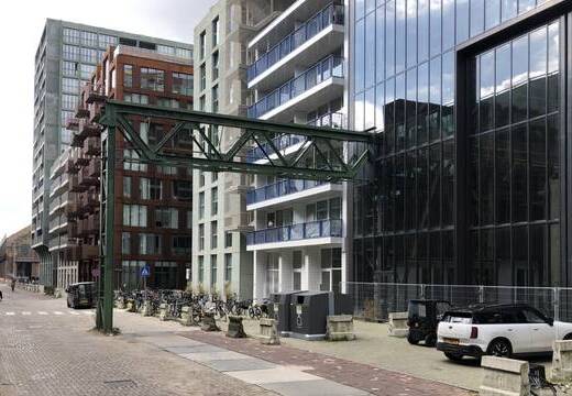 - Houthavens, Pontsteigergebouw: wiedereröffnete Halbinselstruktur mit niedrigen und mittelhohen Blöcken von Wasserwohnungen